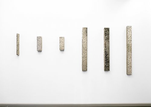 Corten Steel galvanized, 53 x 4,5 x 8 cm I 35,5 x 11 x 8 cm I 33 x 11 x 8 cm I 108 x 12,5 x 7 cm I 108,5 x 13 x 7,5 cm I 123,5 x 11,5 x 6,5 cm